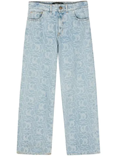 light blue cotton denim patterned jacquard belt loops classic five pockets straight leg concealed front zip and logo-engraved button fastening