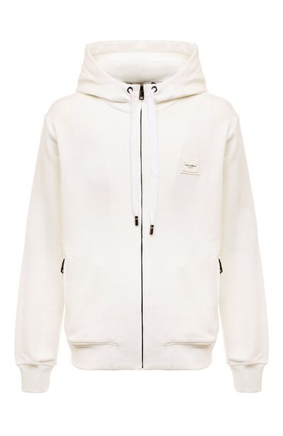 Толстовка из плотного и вместе с тем дышащего трикотажа поддержит комфортный микроклимат и на прохладной улице, и в теплом помещении. Материал выполнили из длинноволокнистого хлопка, который почти не пилингуется, поэтому кремовой модели не страшны частые стирки. Лаконичное изделие с молниями на боковых карманах украсили небольшой фирменной пластиной в тон.