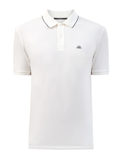 Стильное мужское поло от C.P. Company выполнено из хлопка пике в базовом белом цвете. Выверенный состав с добавлением эластичных волокон делает модель универсальным элементом базового летнего гардероба. Контрастная окантовка ворота и патч с вышитым логотипом вносят в образ динамичный штрих. Детали: застежка на брендированные пуговицы в тон, классический отложной ворот.