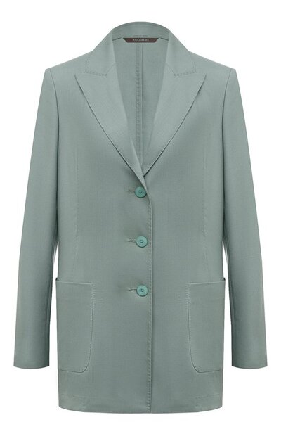 Однобортный жакет ментолового оттенка мастера марки, основанной Луиджи Коломбо, сшили из тонкой ткани Cashmere 4.0 с диагональным переплетением нитей. Для производства материала использовали благородный тончайший кашемир. Изделие без подклада получилось немнущимся, почти невесомым и исключительно приятным на ощупь, поэтому его комфортно носить даже на голое тело. Приверженность бренда ручной работе подчеркнули эластичной строчкой пунто, сохраняющей четкость линий кроя.