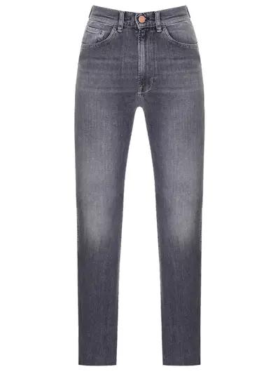 -Серые джинсы из стрейч-хлопка с выбеленным эффектом от 3Х1. -Модель с кроем по фигуре, высокой посадкой, поясом со шлевками, прорезными и накладными карманами, застежкой на молнию и пуговицу.