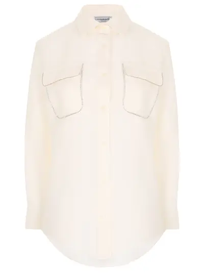 -Кремовая рубашка из легкого дышащего льна от FORTE DEI MARMI COUTURE.