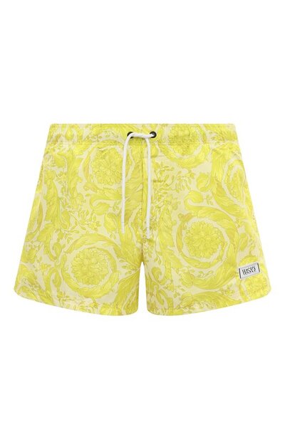 Желтые плавки-шорты с фирменным принтом Barocco сшили из тонкого быстросохнущего текстиля. Свободную модель дополнили эластичным поясом-кулиской, которым удобно регулировать посадку на талии. Люверс на заднем кармане отводит воздух, поэтому изделие не будет вздуваться при погружении в воду.