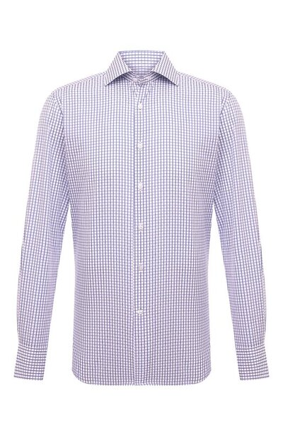 Голубая рубашка в небольшую клетку сможет найти общий язык и с повседневными джинсами, и с формальными брюками. Для пошива модели мастера бренда, основанного Стефано Риччи, использовали легкий, шелковистый на ощупь поплин из тщательно отобранного длинноволокнистого хлопка.