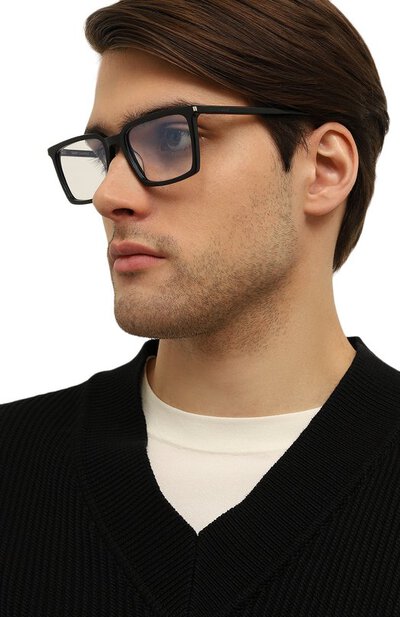 Прямоугольная форма и черный цвет делают оправу универсальной. Для изготовления аксессуара использовали легкий прочный ацетат, вручную отшлифованный до глянцевого блеска. Материал почти ничего не весит, поэтому модель не ощущается на лице и не вызывает усталость при длительном использовании.