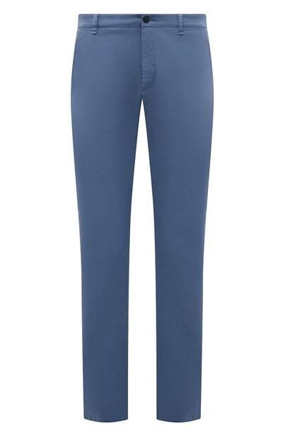 Лаконичные синие брюки справятся в повседневном гардеробе с многозадачностью, сочетаясь с одеждой разных оттенков. Для пошива изделия с двумя боковыми карманами спереди и парой задних выбрали плотный хлопок с добавлением стрейчевых волокон. Такой слегка эластичный материал мало мнется, поэтому модель долго выглядит безупречно.