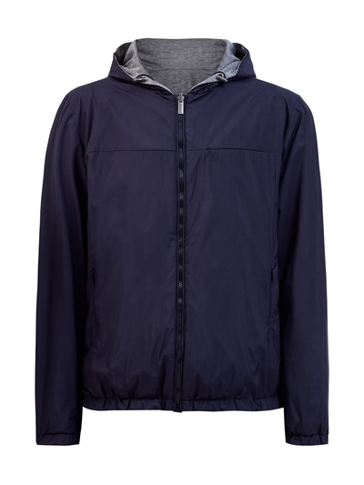 Двусторонняя мужская куртка-ветровка от Peserico характеризуется лаконичным дизайном и технологичными материалами. Модель выполнена из влаго- и ветрозащитного нейлона в оттенке индиго с одной стороны, и в меланжево-сером из хлопка — с другой. Три прорезных карманы на молниях и регулируемый капюшон завершают функциональный дизайн. Сделано в Италии.