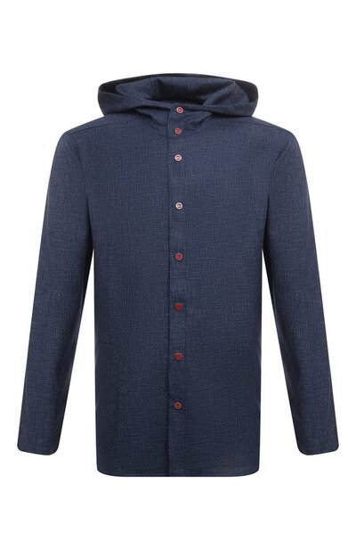 Легкая шерсть в мелкую клетку виши адаптировала неформальную синюю рубашку для холодной погоды. Мастера неаполитанской марки отобрали для ткани овечье руно с тонкими и нежными волокнами, поэтому модель получилась не только теплой и дышащей, но и очень мягкой. Изделие с глубоким капюшоном застегивается ярко-красными кнопками с логотипом бренда.