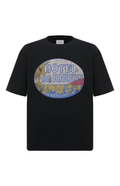 Легкую черную футболку украсили разноцветным принтом с брендированной надписью и искусственно нанесенными потертостями, придающими винтажный вид. Для пошива дышащей приятной на ощупь модели использовали мягкое хлопковое джерси. Изделие органично впишется в непринужденный образ с джинсами и кедами.