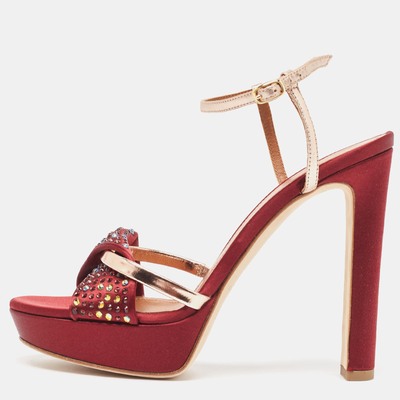 Malone Souliers Burgundy/Gold Satin and Leather Embellished Platform Sandals Size 37.5 961395 (lpn25880923)
