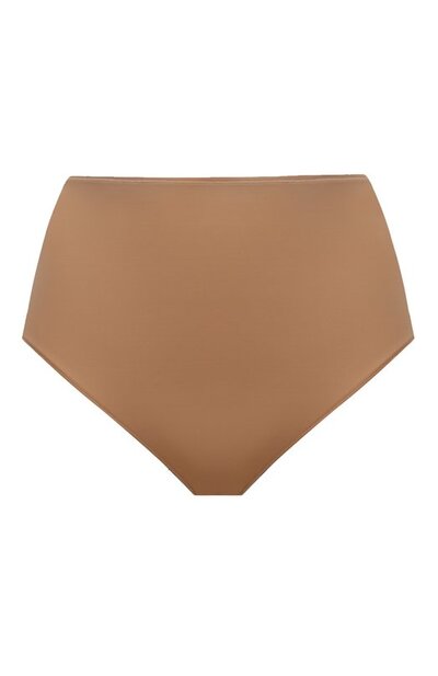 Бежевые слипы с высокой посадкой выполнены из тонкого гладкого джерси с шелковистой текстурой. Приятный на ощупь матовый материал отлично пропускает воздух, а плоские швы не раздражают кожу. Однотонные трусы с узкой резинкой не будут заметны под облегающей одеждой.
