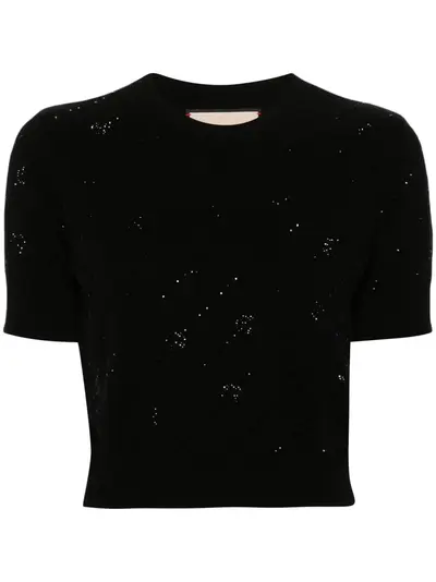 black cashmere knitted construction crystal embellishment signature Interlocking G logo ribbed crew neck short sleeves cropped ribbed cuffs and hem
