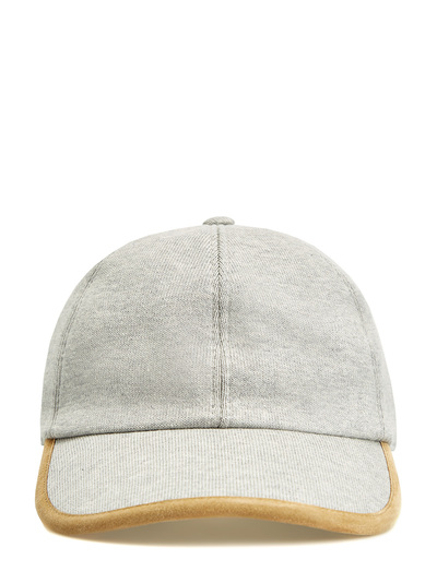 Лаконичная мужская бейсболка от Peserico создана в серо-бежевой гамме. Модель из фактурной хлопковой пряжи с легким неоднородным эффектом дополнена минималистичной литой деталью, а также отделкой из замши. Фиксатор на ленту велкро позволяет регулировать ширину изделия индивидуально. Сделано в Италии.