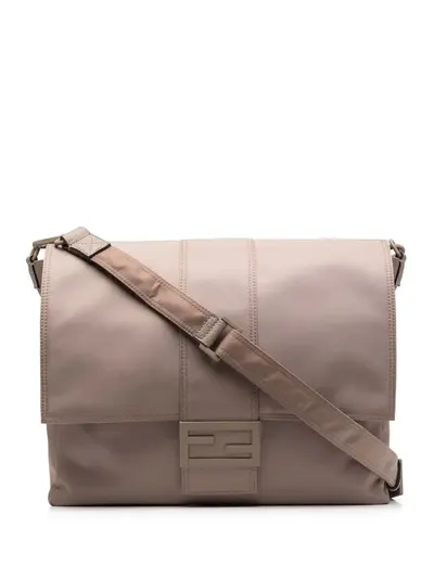 beige FF logo plaque foldover top with magnetic fastening main compartment adjustable shoulder strap
