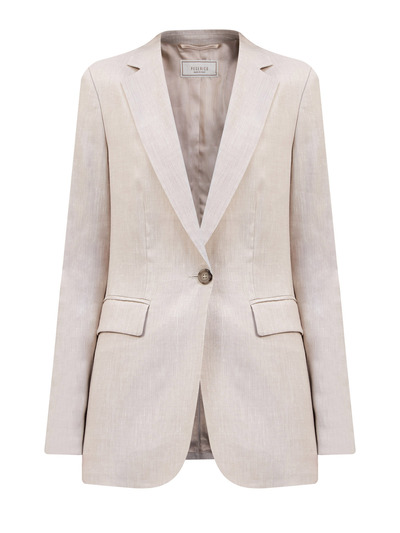 Peserico Однобортный жакет из тонкой шерсти и льна с кожаной деталью 246826 (бежевый, lpn25966953)