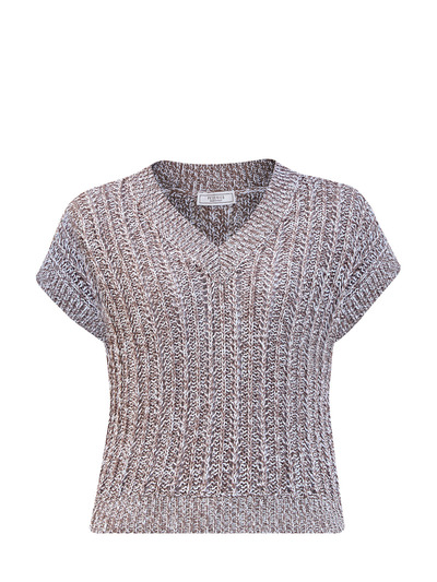 Peserico Жилет из хлопка с V-образным вырезом и вплетенными пайетками 246828 (коричневый, lpn25966955)