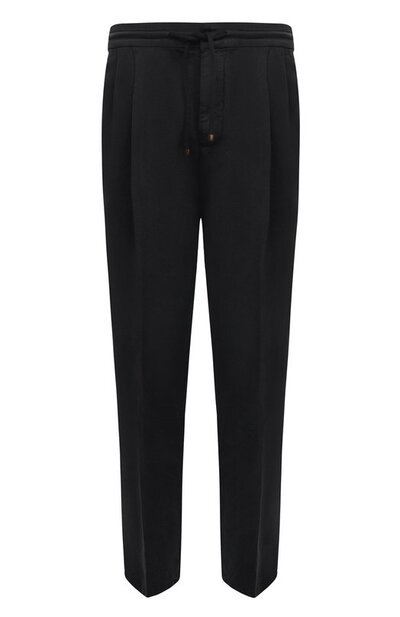 Темно-синие чуть зауженные брюки с двойными защипами получились в равной степени комфортными и универсальными. Прочный габардин из тонкого льна и длинноволокнистого хлопка сохраняет ощущение прохлады даже в жаркую погоду, а шнурок в широком поясе позволяет довести посадку на талии до идеальной. По бокам и сзади предусмотрели три кармана.