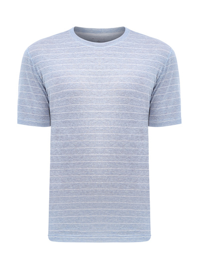 Eleventy Футболка из дышащего льна и хлопка с узором в полоску 246925 (голубой, lpn25978671)