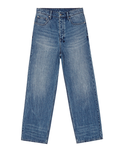 Джинсы KSUBI из плотного хлопкового денима. Модель свободного силуэта с комфортной посадкой и застежкой на молнию и пуговицу с классическими пятью карманами.