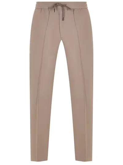 -Темно-бежевый брюки из хлопка от CIRCOLO 1901. -Модель с кроем по фигуре, эластичным поясом на кулиске, прорезными карманами, графичными стрелками, которые визуально вытягивают силуэт.