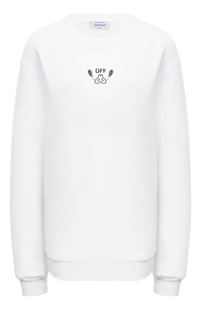 На белоснежном свитшоте, как на чистом листе бумаги графитовым карандашом, изобразили небольшой логотип в сочетании с мотивом пейсли. Каплевидные элементы сложили сзади в форме фирменных стрелок. Для пошива изделия использовали дышащий хлопковый трикотаж, гладкий снаружи и мягкий фактурный внутри.