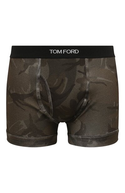 Облегающие боксеры цвета хаки сшиты из гладкого хлопкового джерси с камуфляжным принтом. Приятный на ощупь трикотаж стрейч с шелковистой текстурой хорошо пропускает воздух, а эргономичный крой не сковывает движения и обеспечивает комфортную посадку по фигуре. Широкий пояс-резинка украшен белым логотипом марки.