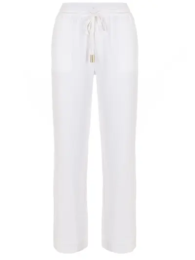 -Белые брюки из мягкого хлопка от LORENA ANTONIAZZI. -Модель свободного прямого кроя со стандартной посадкой, эластичным поясом на кулиске и прорезными карманами.