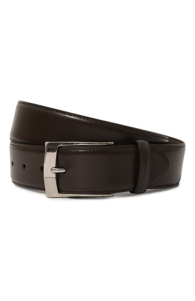 Темно-коричневый оттенок поможет ремню средней ширины подружиться с брюками любого цвета. Аксессуар изготовили из плотной воловьей кожи, выделанной вручную и отшлифованной до идеальной гладкости и глянцевого блеска. Модель регулируется серебристой пряжкой с никелевым покрытием, устойчивым к появлению царапин и потертостей.