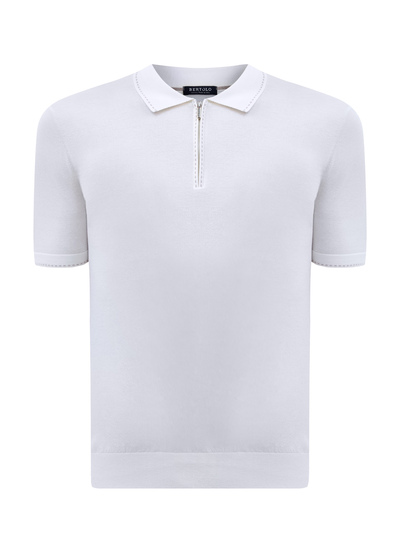 Лаконичный джемпер-поло от Bertolo выполнен в базовом белом цвете из тонкой пряжи на основе хлопка и шелка — полностью натуральный состав обеспечивает максимальный комфорт. Стильный акцент — пунктирный принт по краям. Детали: застежка-молния с фирменным пуллером, отложной воротник. Сделано в Италии.