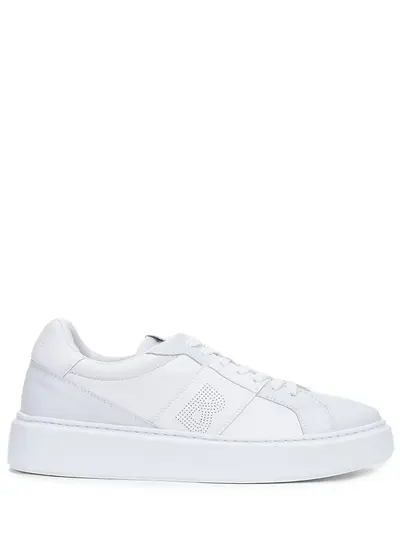 -Белые кеды из натуральной кожи от BOGNER. -Модель с закругленным мысом, функциональной шнуровкой, толстой резиновой подошвой, перфорированными логотипами на боковых панелях, подкладом из текстиля.