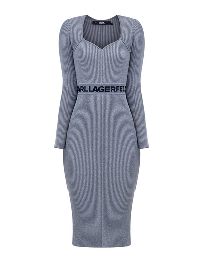 Karl Lagerfeld Платье из трикотажа с мерцающей нитью ламе и жаккардовым поясом 247616 (серый, lpn26119640)