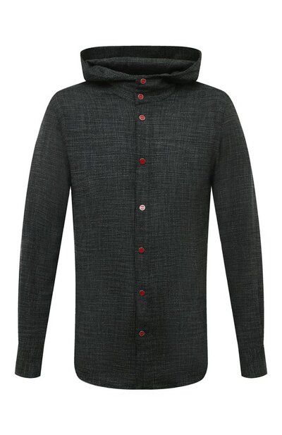 Зеленая рубашка с графичным узором, полученным переплетением нитей разных оттенков, выручит на прогулке в прохладный день. Модель с капюшоном сшили из мягкой тонкой шерсти с добавлением гладкого шелка и прочного хлопка, поэтому она хорошо согревает и защищает от небольшого ветра. Изделие с прорезными карманами застегивается на красные брендированные кнопки.
