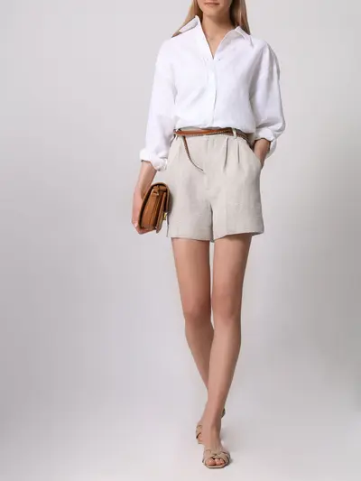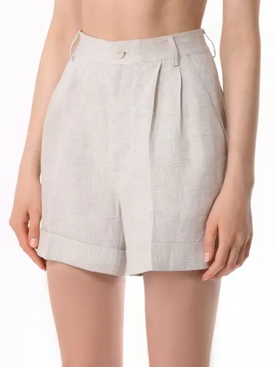 -Бежевые в клетку шорты из легкого дышащего льна от FORTE DEI MARMI COUTURE.