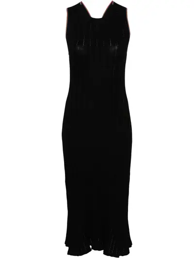 black/multicolour cotton chunky ribbed knit openwork areas artist stripe-pattern trim crossover strap detail to the rear crew neck sleeveless square open back ankle-length curved hem unlined