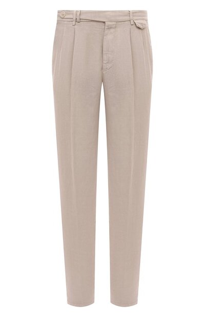 Бежевые брюки будут уместны в летнем городе, достаточно надеть их с джемпером, пенни-лоферами и замшевым ремнем. Модель с боковыми и задними карманами сшили из тонкого прочного льна, который дарит ощущение свежести даже в жару. Под поясом заложили двойные защипы, формирующие непринужденный силуэт Relaxed.