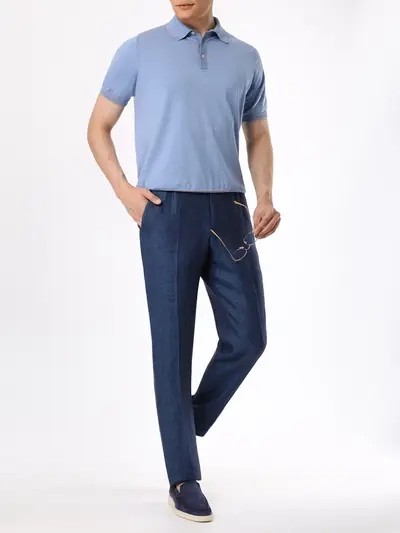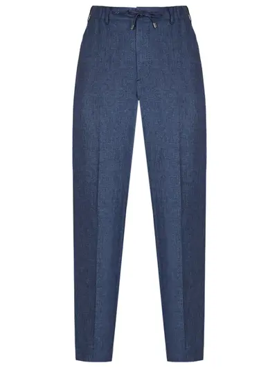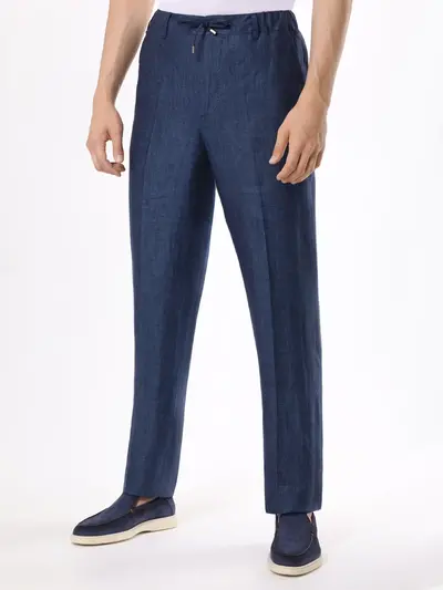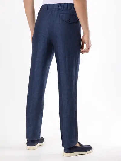 -Синие брюки из дышащего льна от FIORONI CASHMERE.