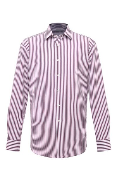 Рубашка в фиолетовую полоску органично будет смотреться и с деловым костюмом, и с джинсами. Модель с воротником кент раскроили и сшили вручную из тонкой хлопковой ткани. Материал безупречно пропускает воздух, а за счет продуманного кроя комфортно садится по фигуре и сохраняет свободу движений.