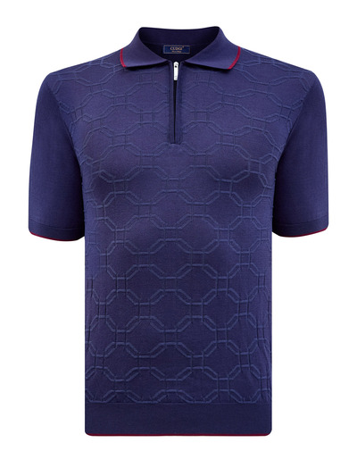 Cudgi Джемпер-поло с фактурным геометрическим узором и контрастным кантом 247791 (синий, lpn26180318)
