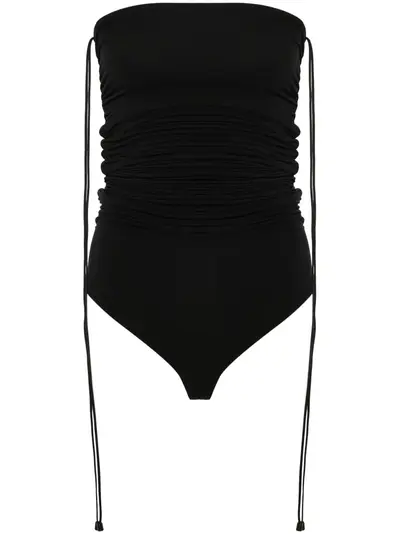 black stretch-design multi-way design strapless sleeveless ruched detailing drawstring fastening tube design press-stud fastening at the bottom