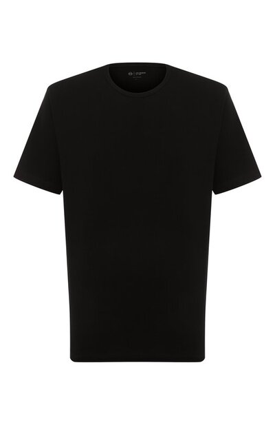 Черная базовая футболка прямого кроя сшита из дышащего хлопкового джерси с гладкой матовой поверхностью. В процессе производства нити пряжи скручиваются в противоположных направлениях, благодаря чему материал становится мягче и значительно прочнее. Предлагаем создать образ с бомбером в тон, синими джинсами и белыми кедами.