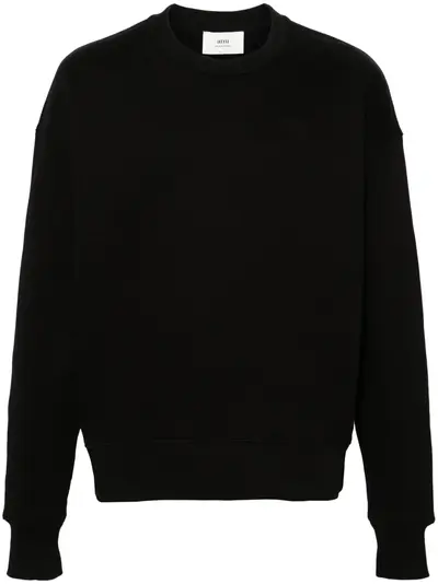 black cotton blend jersey texture signature Ami de Coeur monogram motif embossed logo to the front embroidered logo to the rear crew neck drop shoulder long sleeves ribbed cuffs and hem fleece lining When buying this unisex item, keep in mind that it is graded in standard men's sizing.