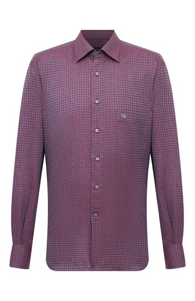 Бордовая рубашка одинаково хорошо сочетается и с джинсами, и с классическими брюками. Модель силуэта Classic fit сшили из тонкого хлопка с добавлением легкого льна, который поддерживает оптимальный микроклимат. Гладкие нити слегка поблескивают, поэтому жаккардовый узор выглядит рельефным. Нагрудный карман декорировали металлической эмблемой.