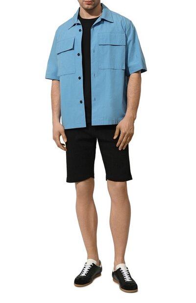 Черные шорты с жаккардовым паттерном в тон гармонично дополнят неформальный образ с футболкой и рубашкой. Для пошива модели с прорезными карманами использовали эластичный хлопковый материал с добавлением прочного шелка, придающего деликатный блеск. Посадку на талии позволяет отрегулировать шнур, продетый в широкий пояс-кулиску.