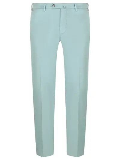 -Зеленые брюки из хлопка от L.B.M.1911. -Модель стандартного кроя и посадки с поясом со шлевками, прорезными карманами, застежкой на молнию и пуговицу, графичными стрелками.