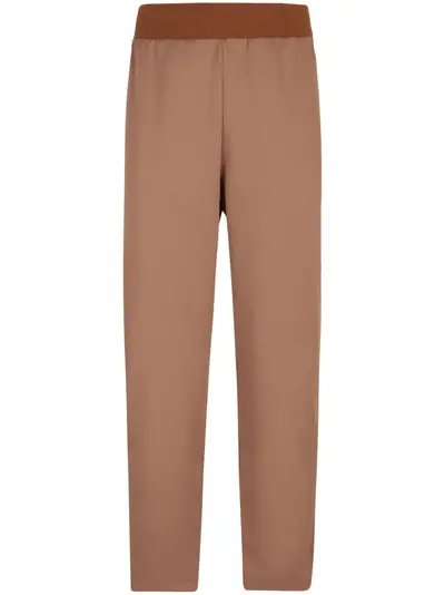brown/beige cotton blend side stripe detailing elasticated waistband two side slit pockets rear patch pocket straight leg