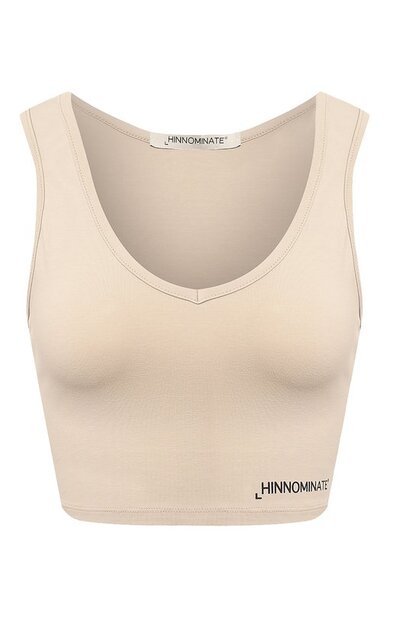 Бежевую укороченную майку с глубоким V-образным вырезом и узким поясом выполнили из мягкого эластичного джерси. Материал связали из отборного длинноволокнистого хлопка, поэтому он получился шелковистым и очень приятным на ощупь. Принадлежность модели марке обозначили черным логотипом спереди.