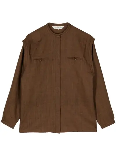 brown wool crew neck front button fastening drop shoulder long sleeves buttoned cuffs two button-fastening chest pockets straight hem Condition: GOOD. This previously owned and used item is in good condition with minimal signs of use. This may include fading of material or plating and scratches.