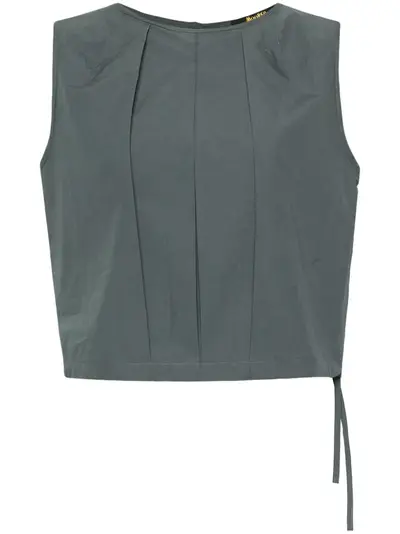 medium grey cotton-linen blend round neck sleeveless pleat detailing to the front and rear cropped drawstring hem keyhole detail to the rear single rear button fastening