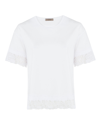 Топ D.EXTERIOR из хлопка с отделкой кружевом. Модель прямого свободного силуэта с круглой линией выреза и спущенной линией плеч.