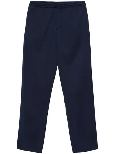 navy blue lyocell blend tapered leg elasticated waistband with internal drawstring two side inset pockets rear patch pocket